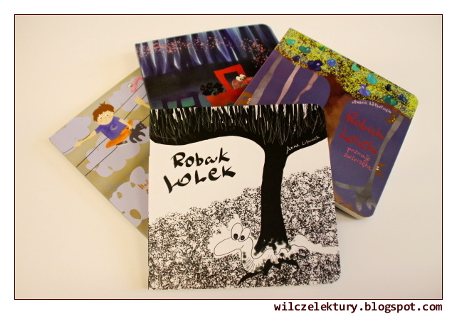 Robak Lolek to bohater obrazkowych historii, które stworzyła Anna Litwinek. Opowieści mają towarzyszyć dziecku przez pierwsze lata życia. Pierwsza z książeczek dla najmłodszych, jest kontrastowa (czarno – biała), pozostałe w ciepłych, stonowanych barwach. Wszystkie cztery historie to wydania kartonowe, więc bez obaw można je wręczyć maluchom do „czytania”. W dwóch pierwszych książkach nie ma słów. Obraz jest tu najważniejszy. Czarno – białe ilustracje mają przyciągać i skupiać wzrok małych oglądaczy. Ponad 6-mczny czytelnik, potrafi już siedzieć i chętnie przewraca strony książek.